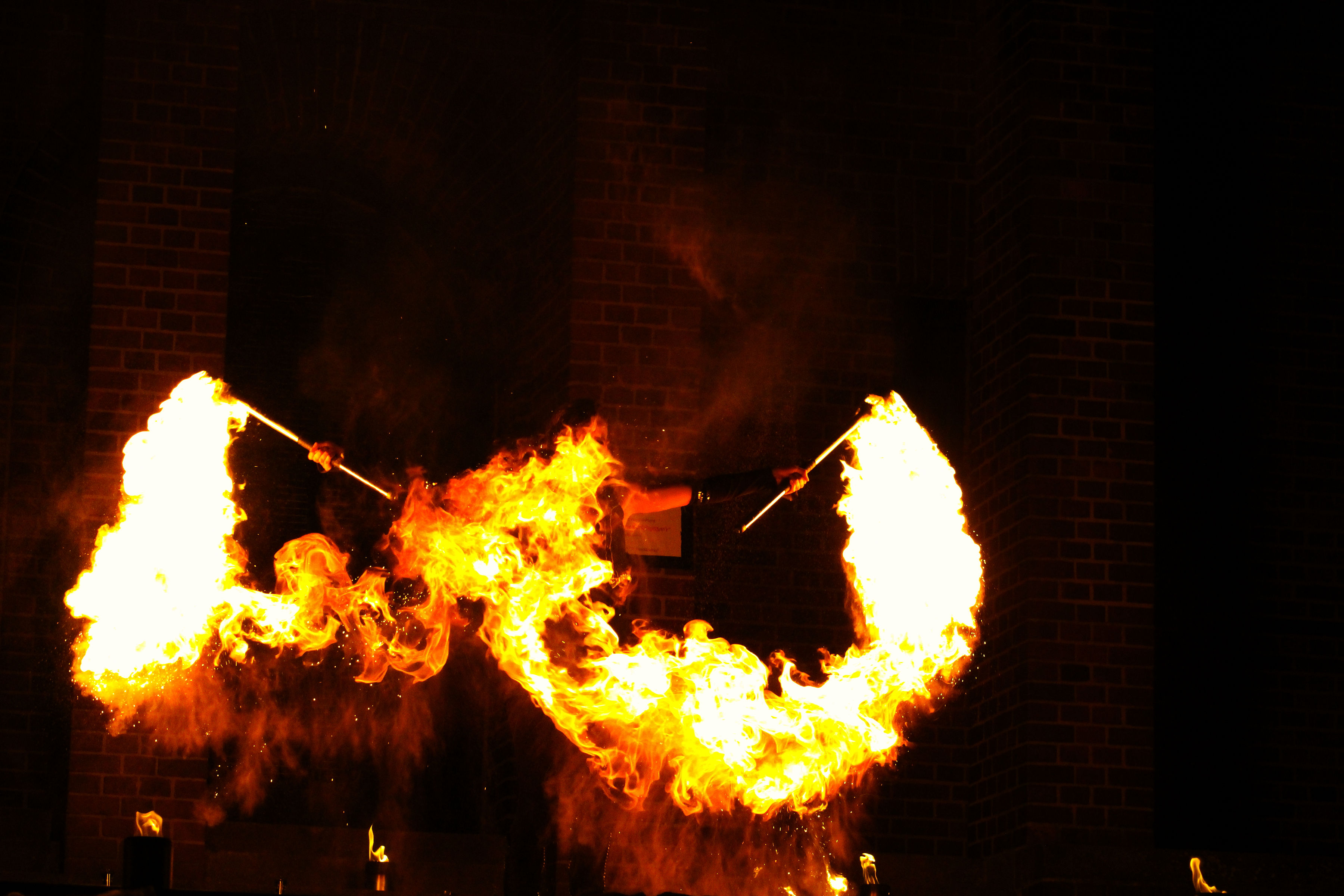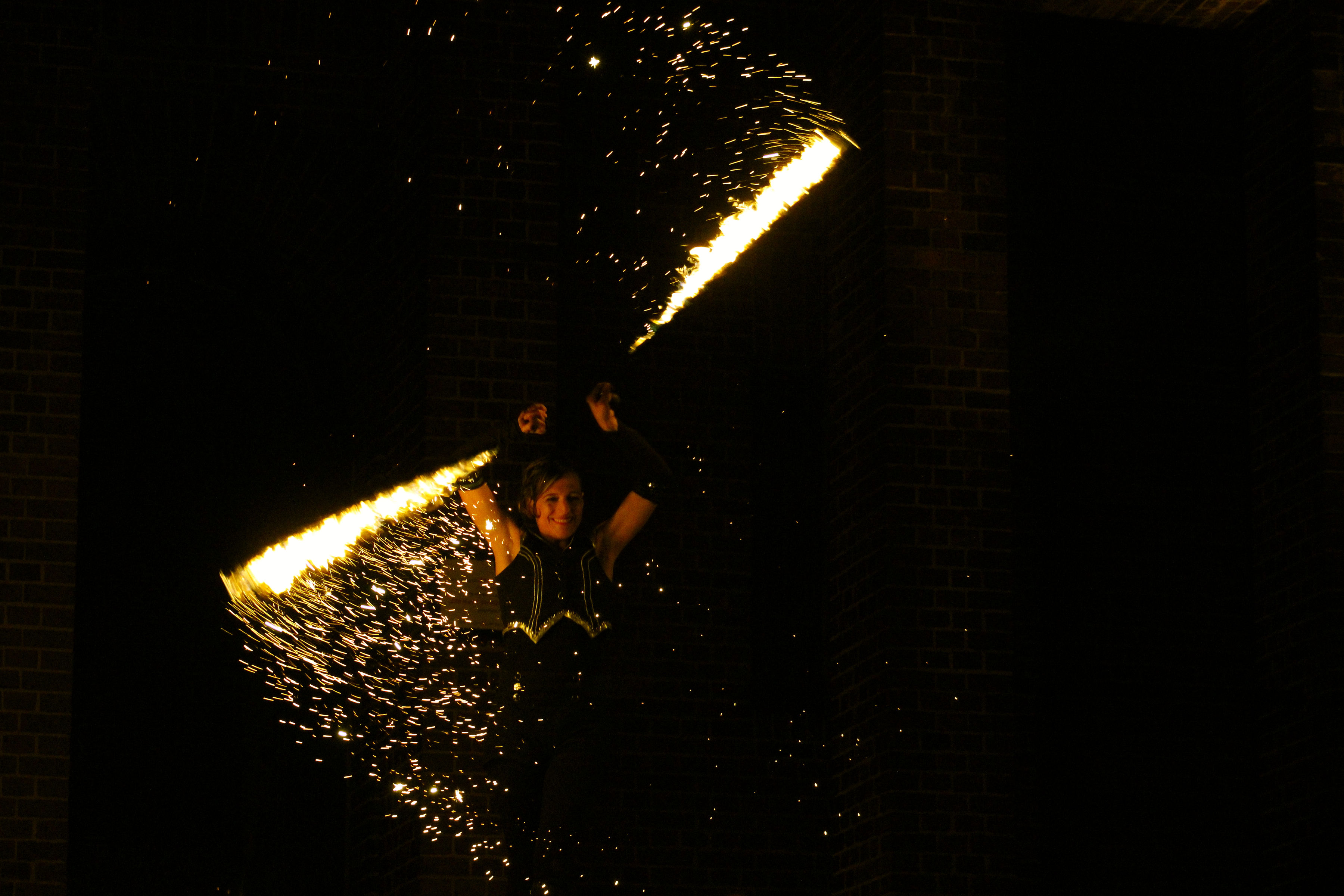 This year, we once again performed at the “Nacht der Kürbisgeister” at the Bismarck Tower in Burg, Spreewald. Hanna presented her fire and light show to a magnificent audience, with hundreds of enthusiastic children.