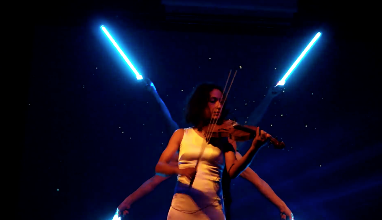 For this event we performed our colourful Pixel Poi Duo with Katharina Garrard playing live violin for this visual LED show.
