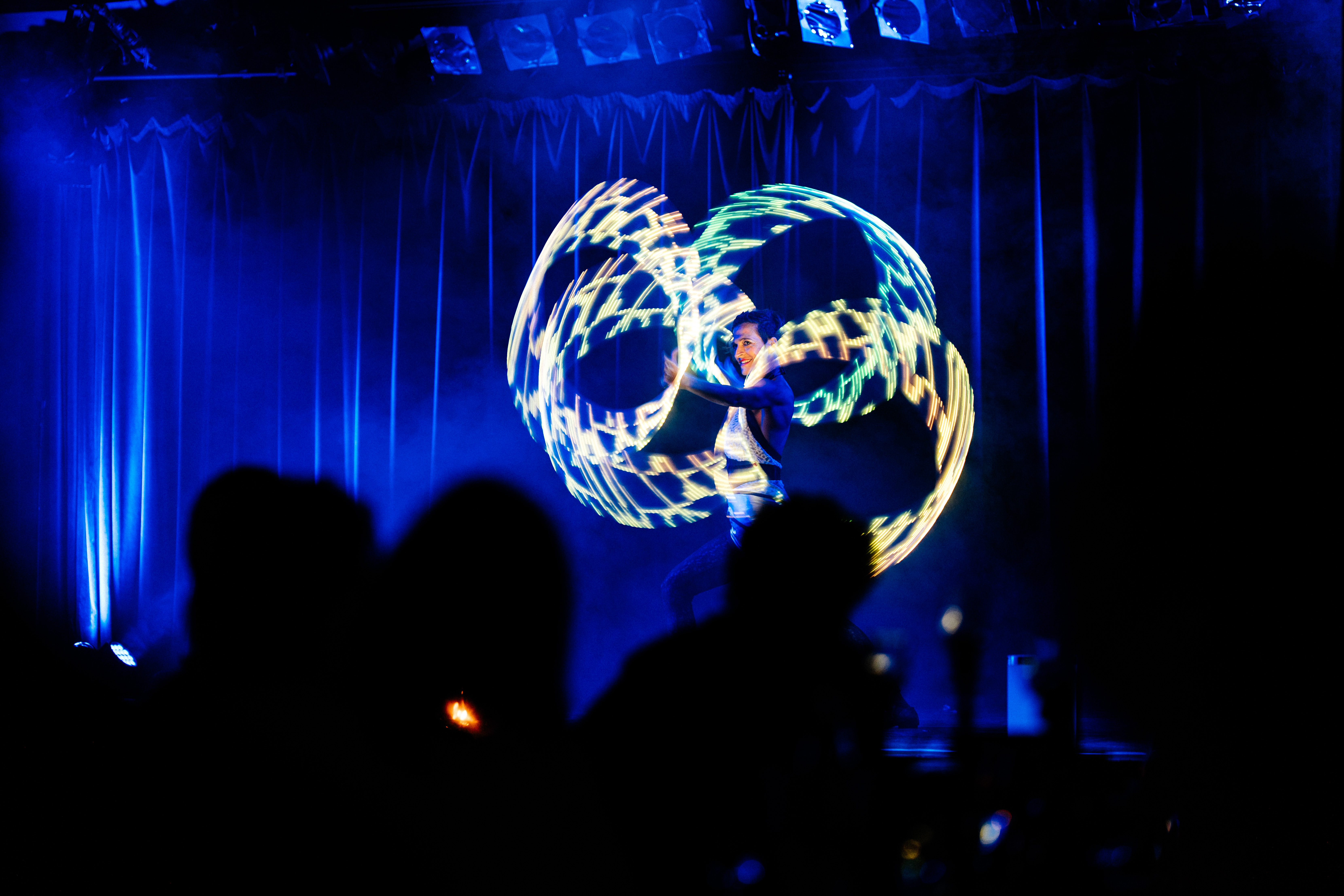 In June the Kino AG Gilde Kino organized a festive evening in the Tipi am Kanzleramt celebrating it's 50th anniversary. We were delighted to perform our LED Hoop and LED Pixelpoi act on this beautiful stage.