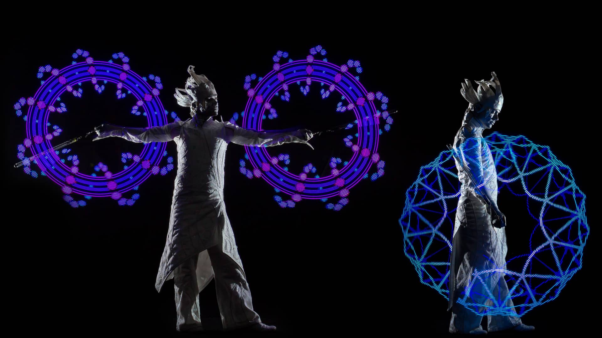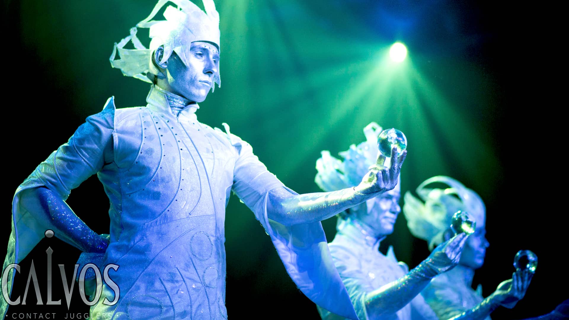Mystical walk act on stilts paired with mesmerizing contact juggling with crystal balls