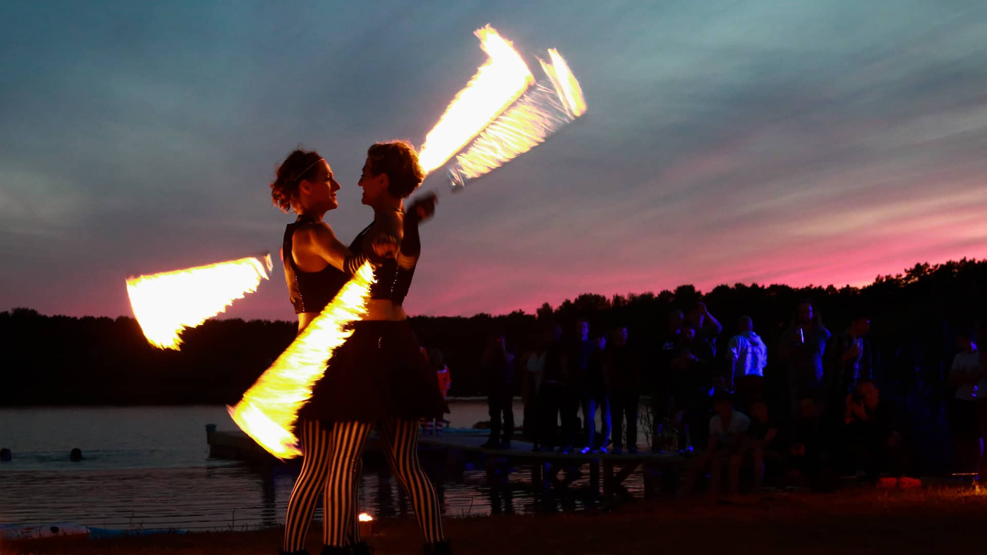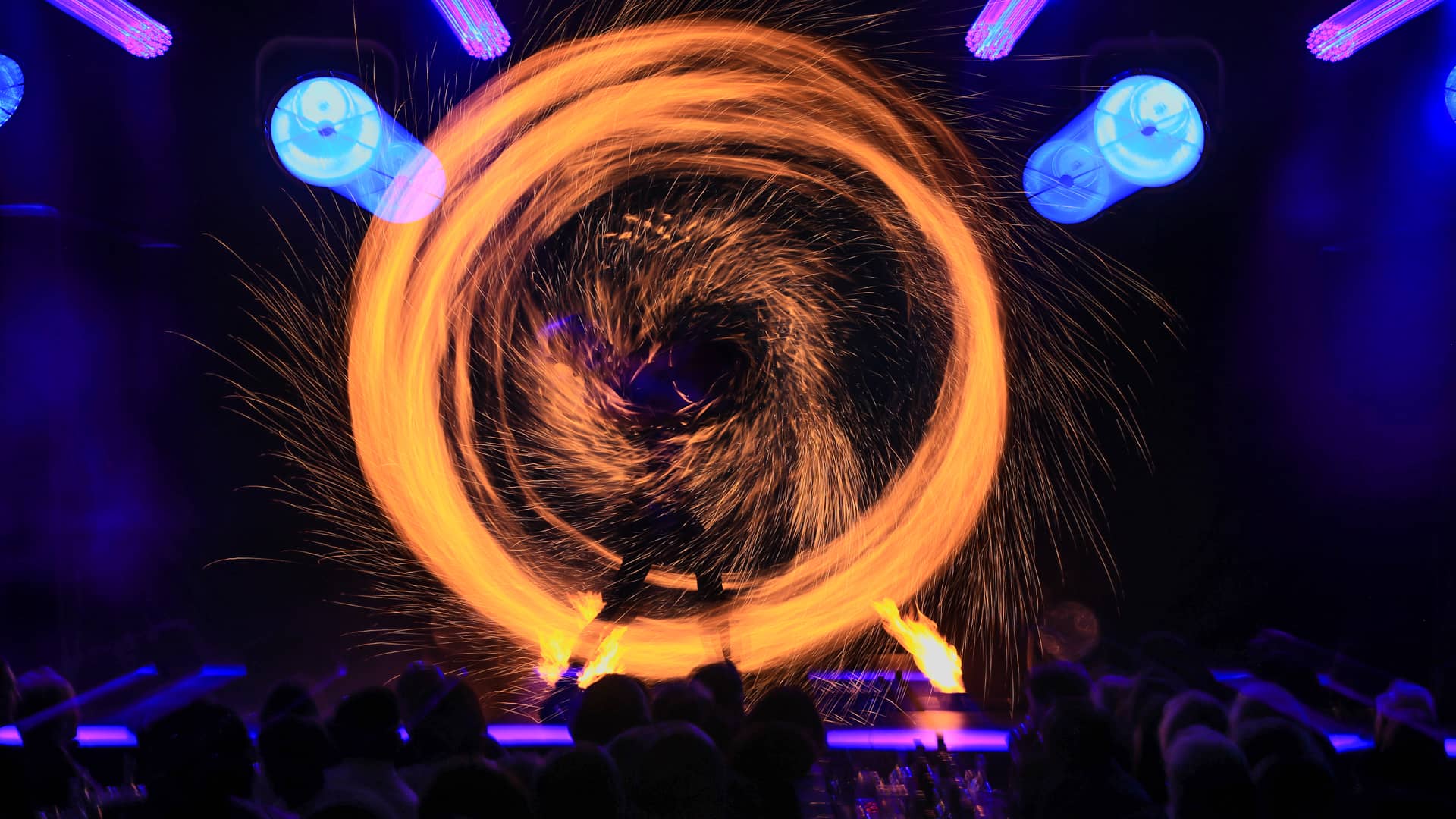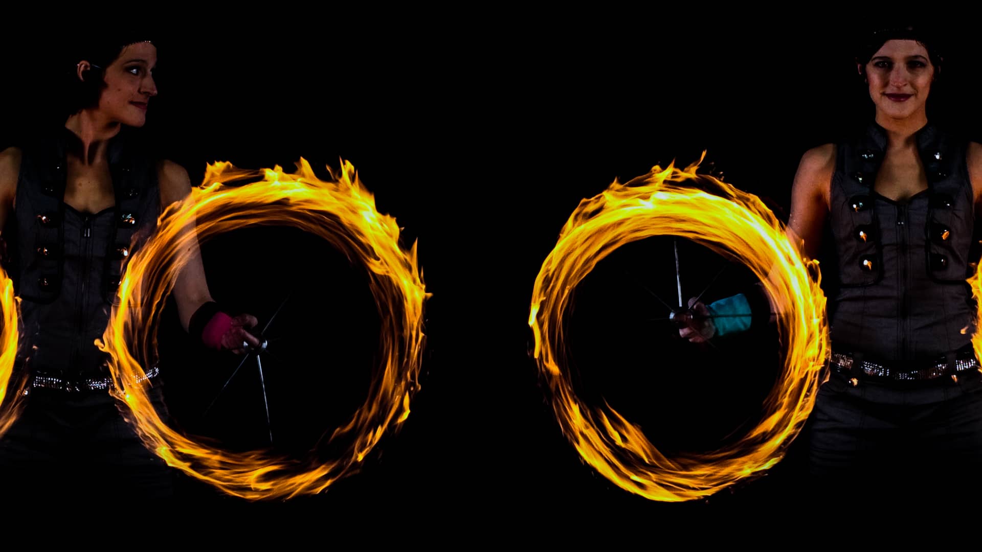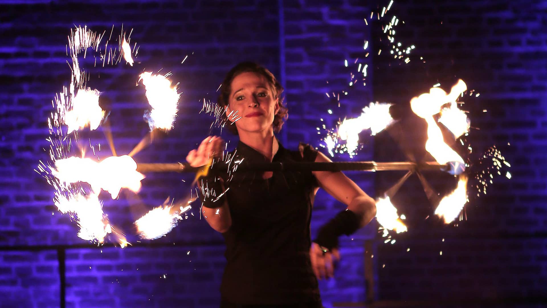 DUALUZ is girl-power in a double pack. This fire show lives from the fascinating and harmonious level of interaction that is only possible between twins. Perfect synchronicity is complemented by the individuality of each performer.