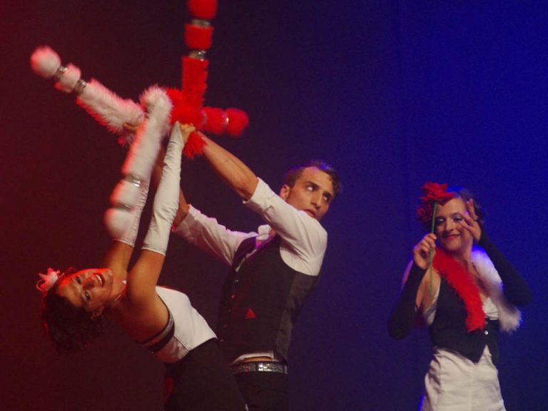 Mit ihrem Tango à Trois und der ausgeklügelten Jongliertechnik Partnerpoi konnten Christina, Hanna und François das Jonglierpublikum überzeugen! Ein historischer Moment!