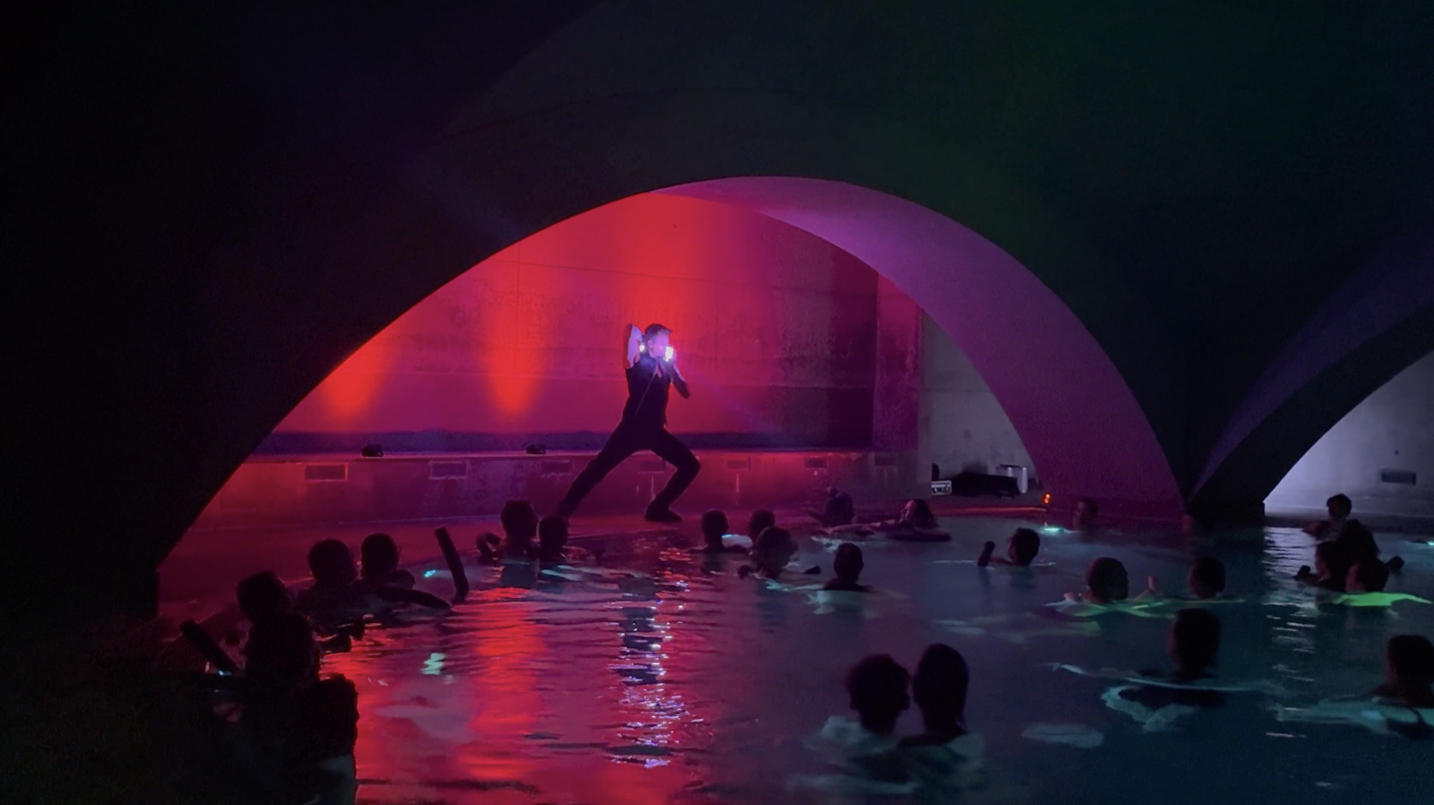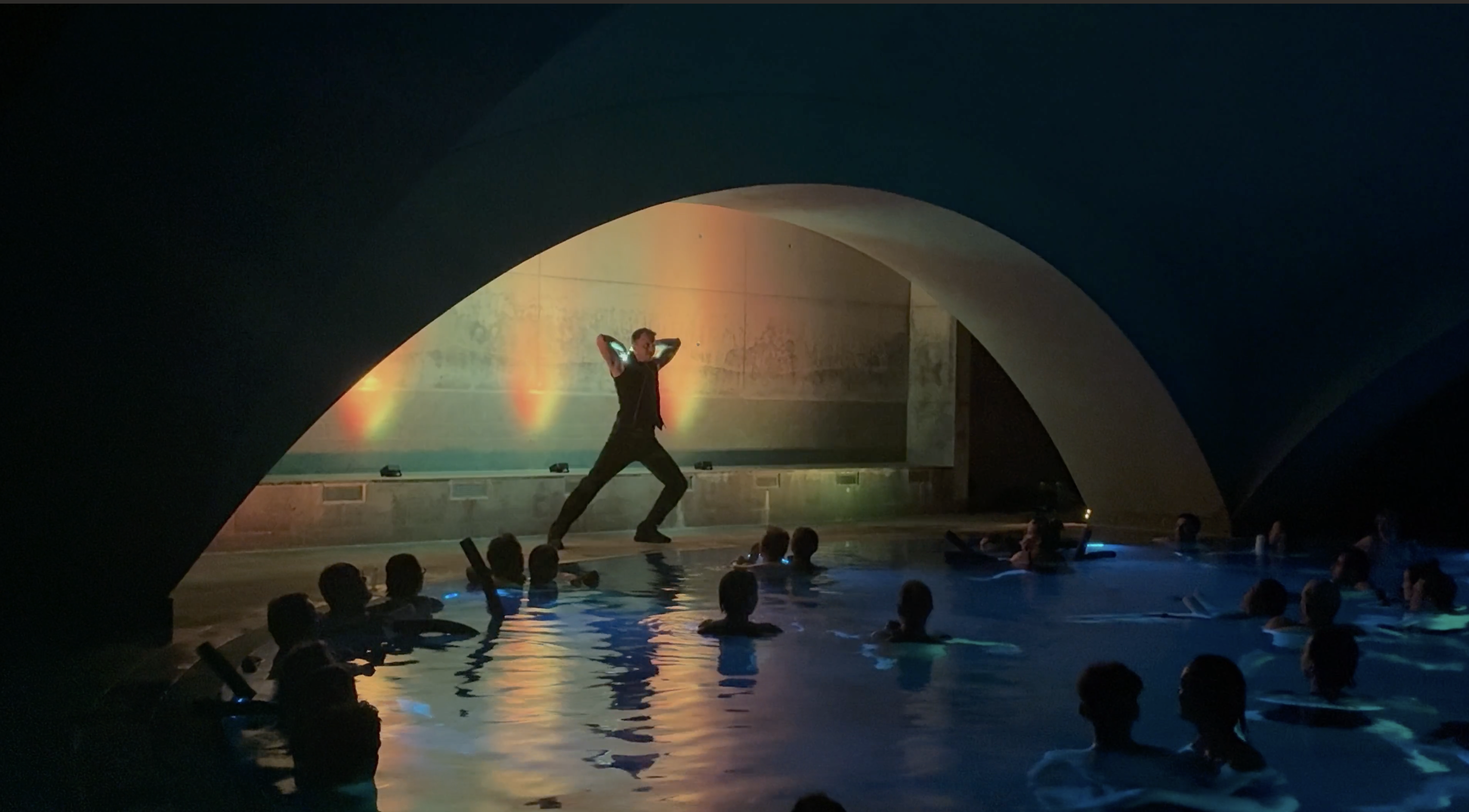 Die markante Kuppelarchitektur, der warme Salzwasserpool und die Spiegelungen des Lichts auf der Wasseroberfläche verleihen unseren Shows dort eine ganz besondere Wirkung. Die Gäste dürfen die Show im warmen Wasser genießen und wir lieben diese Atmosphäre jedes Mal aufs Neue.