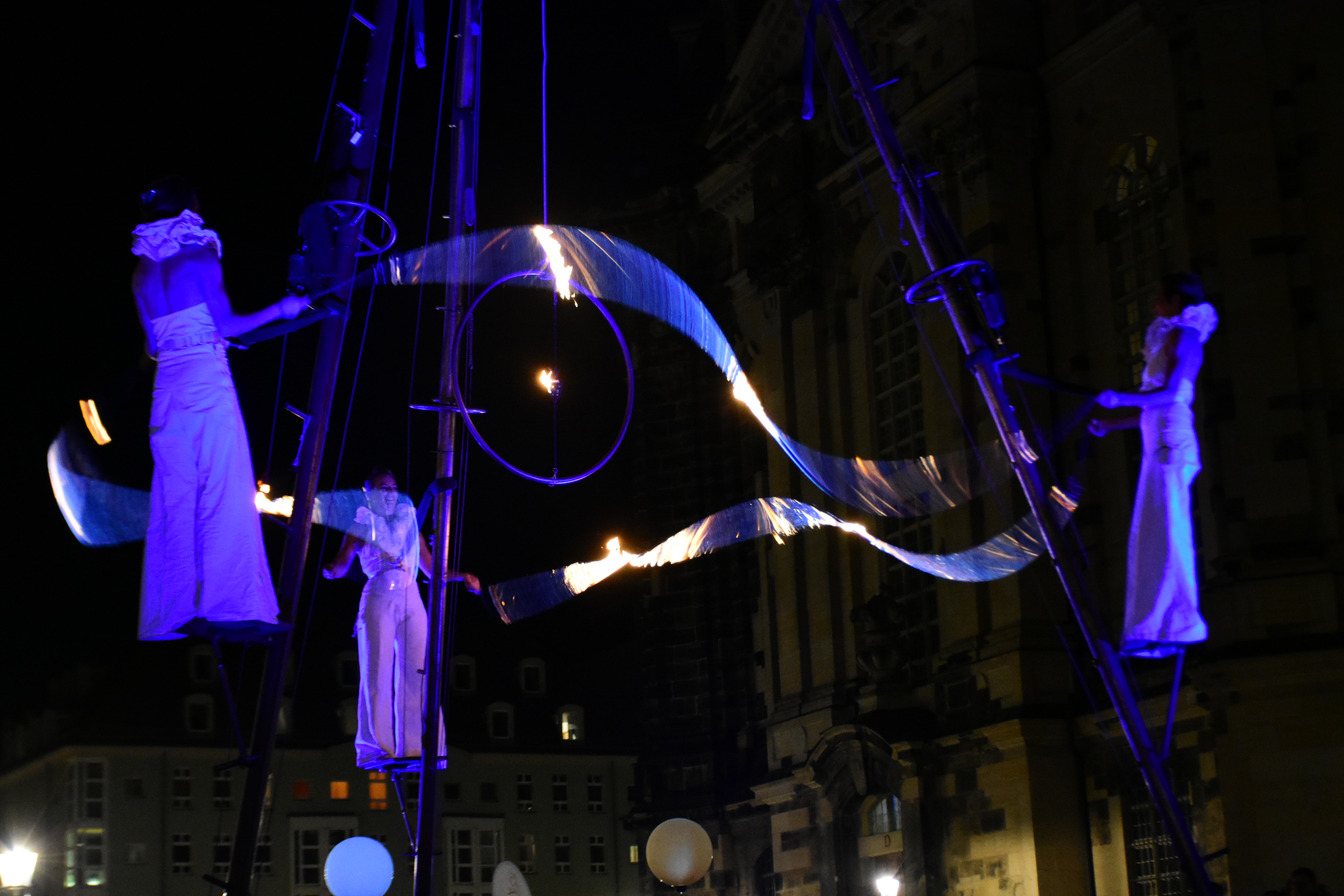 Mit Anbruch der Nacht spielten wir eine Fusion aus Luftartisktik und Feuershow in luftiger Höhe!