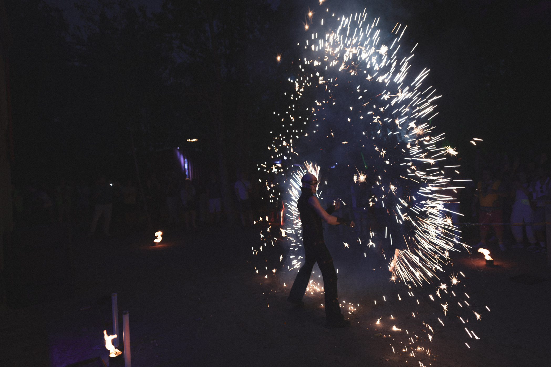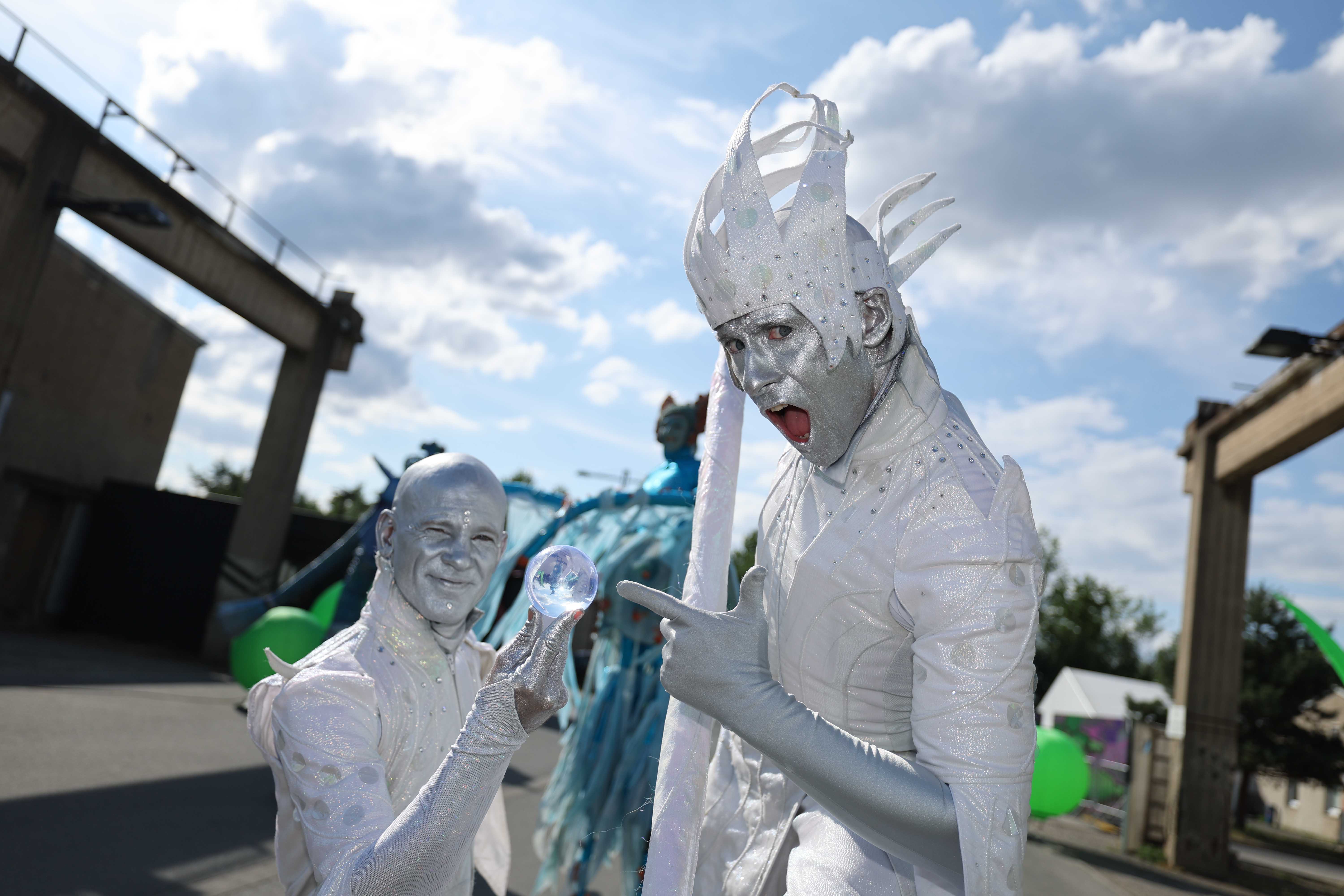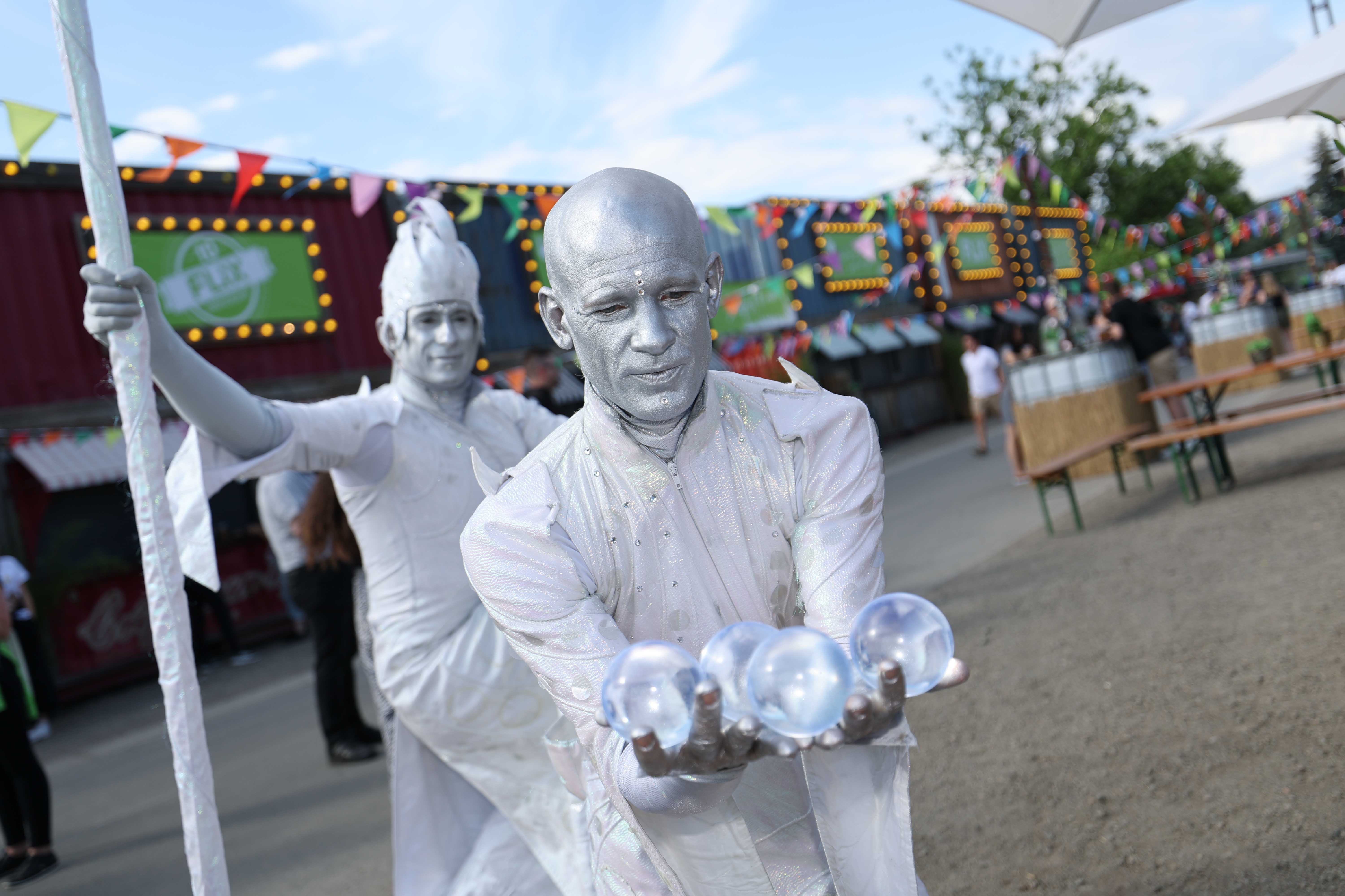 Zu Beginn flanierten unsere Walkact-Figuren, die Space Grand Dames, über das toll dekorierte Gelände. Den krönenden Abschluss des Abends bildete unsere Feuershow.